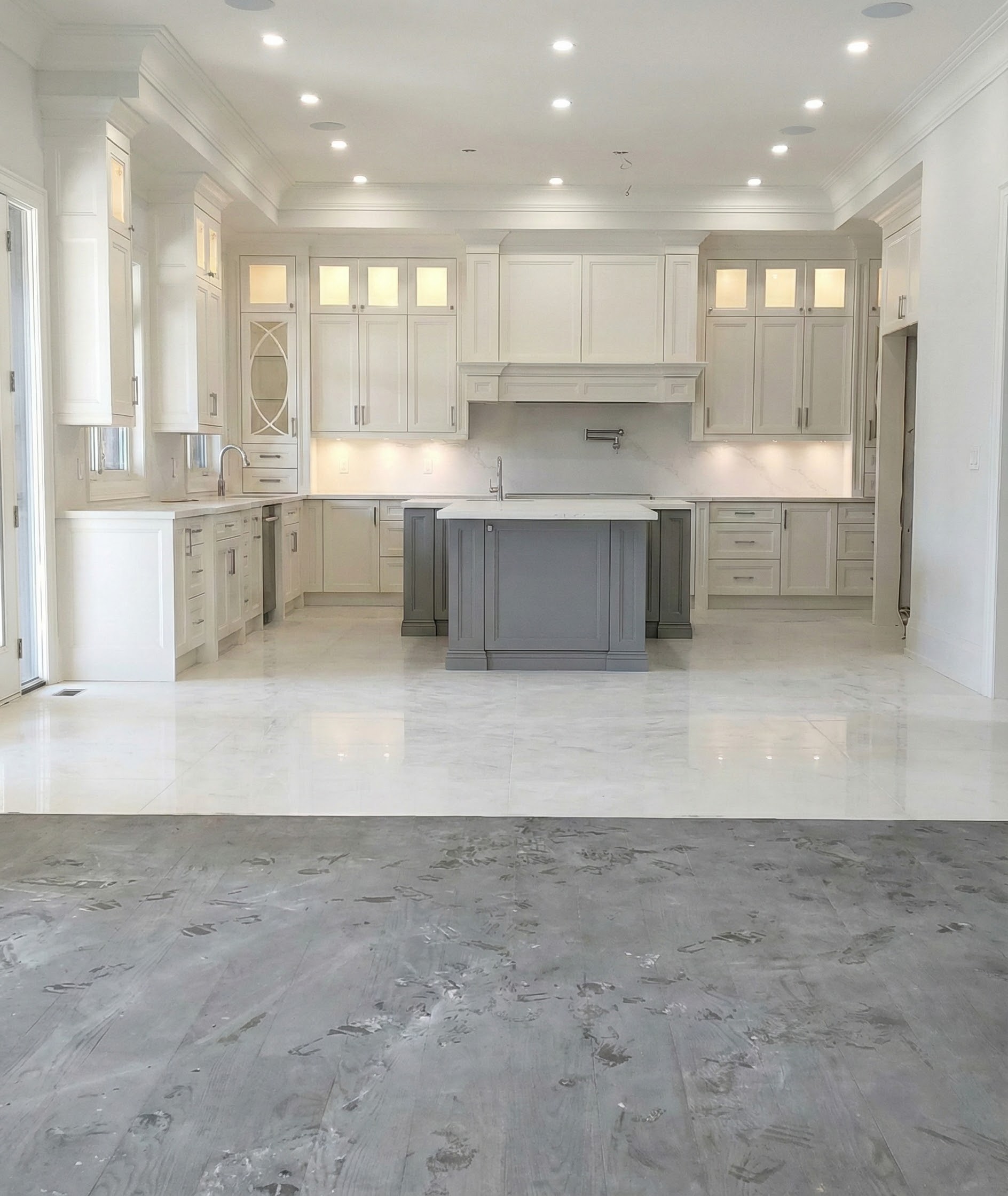 A complete kitchen overhaul featuring custom cabinets, quartz countertops, and a modern open-concept layout.